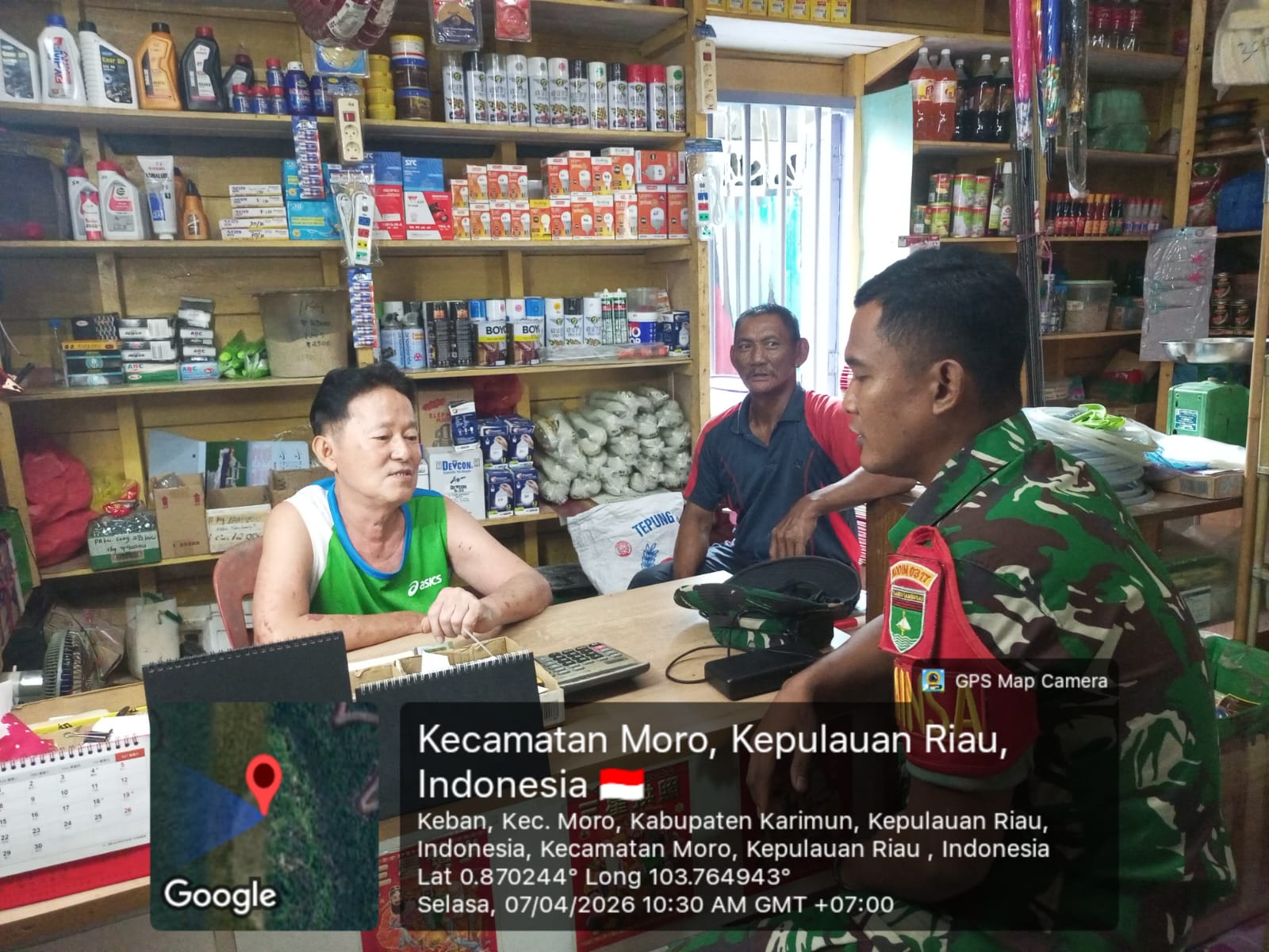 Karimun, 7 April 2026 – Kopda Randi Agus Satria, Babinsa Desa Keban Koramil 02/Moro Kodim 0317/TBK, melaksanakan komsos dengan warga binaan, Selasa (7/4).