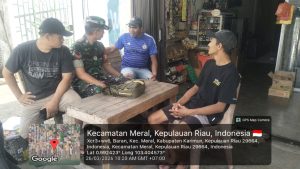 Karimun, 30 Maret 2026 – Koptu Carpawi, Babinsa Kelurahan Lubuk Semut Koramil 01/Balai Kodim 0317/TBK, melaksanakan komsos dengan nelayan Lubuk Semut, Senin (30/3). Koptu Carpawi…