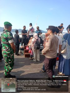 Moro, 24 Maret 2026 – Praka Irvan Frasstyo, Personel Koramil 02/Moro Kodim 0317/TBK, melaksanakan pengamanan Lebaran di Pelabuhan Sri Mandah, Selasa (24/3).